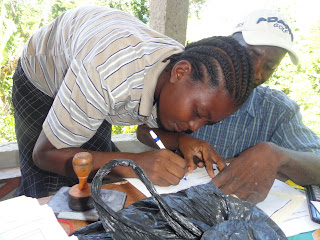 Die Frauen aus dem ora-Projektort Lougou treffen sich regelmäßig in einer Selbsthilfegruppe. Gemeinsam wollen sie Wege aus der Armut gehen und sich mit Rat und Tat zur Seite stehen. Die Gruppe arbeitet sehr praktisch: Viele Frauen mussten zuerst lernen, ihren eigenen Namen zu schreiben. Ihre Unterschrift gibt ihnen eine Identität – ein wichtiger Schritt auf dem Weg zur ersten Geschäftsfähigkeit.