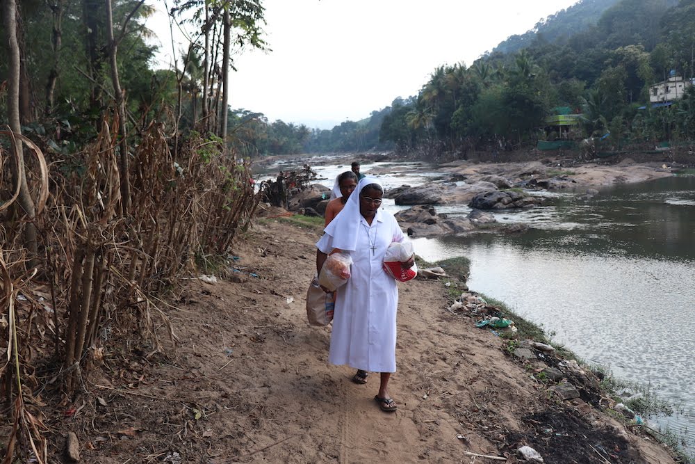| Cluny Ordensschwestern bei der Verteilung von erste Hilfe Paketen im September 2018 am Periyar Fluss |