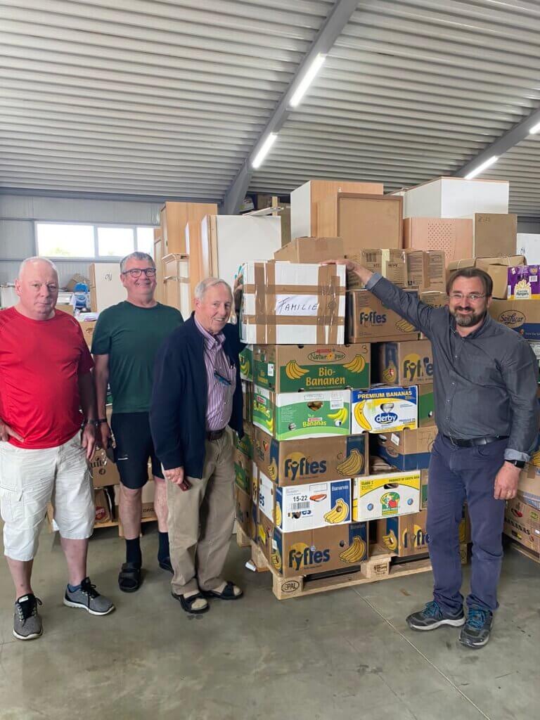 Unser Ziel war es Projektpartner zu besuchen, die aktuell Hilfsgüter in die Ukraine bringen und/oder geflüchtete Familien beherbergen und unterstützen. So lernten wir als erstes Pastor Emanuel Besleaga kennen. Sein Lager befindet sich bei Suceava, unweit der ukrainischen Grenze bei Siret. Gemeinsam mit vielen freiwilligen Helfer*innen werden dort gleichwertige Familienpakete mit den Hilfsgütern gepackt, die mit ORA-Transporten gebracht werden. Es ist sehr bestärkend mit eigenen Augen zu sehen, dass die Güter ankommen, sorgefältig behandelt und wirklich gebraucht werden. Allen voran Lebensmittel!