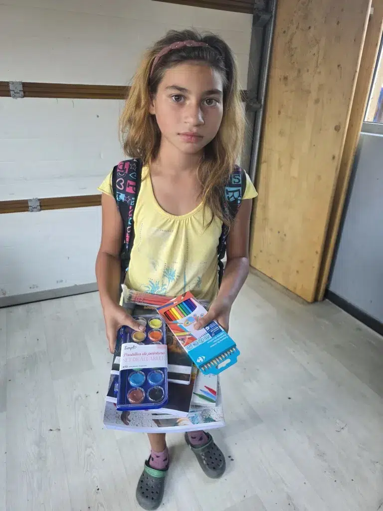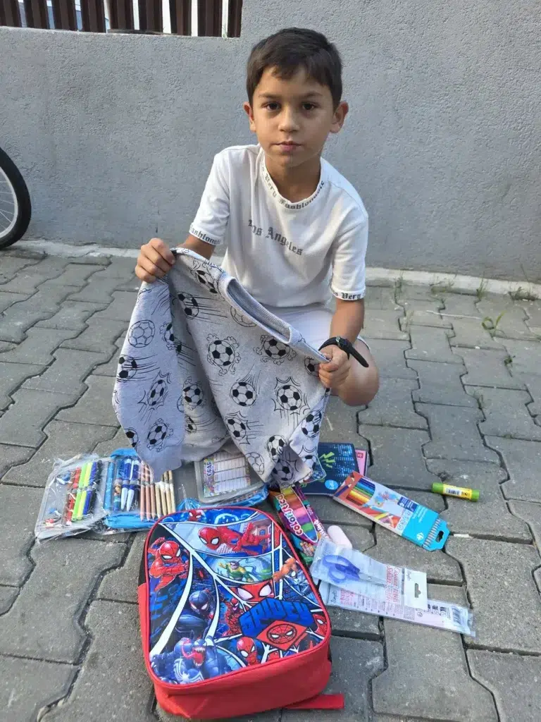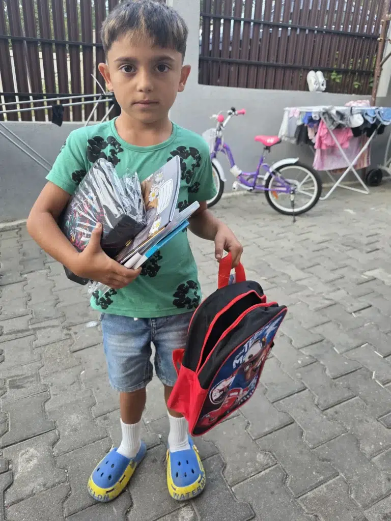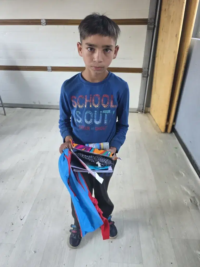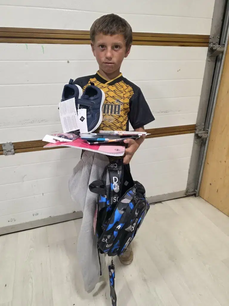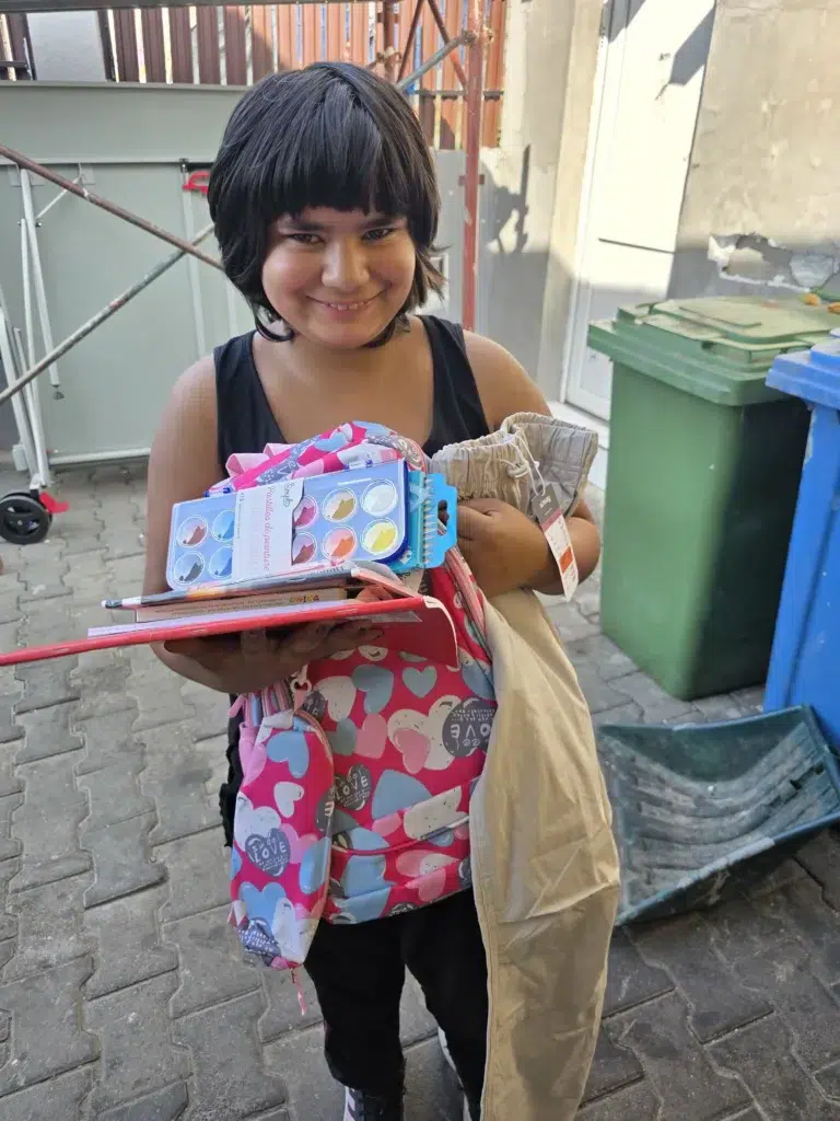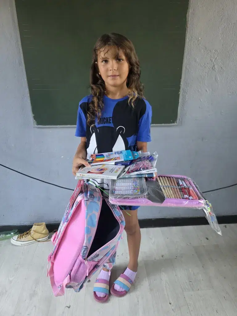 Wie vereinbart haben wir uns auf diejenigen konzentriert, die unsere Hilfe am dringendsten benötigen – insbesondere die Jüngsten, die zum ersten Mal zur Schule gehen. Wir konnten 80 Kinder auf unterschiedliche Weise unterstützen, je nachdem, was ihnen fehlte. Einige brauchten alles: Taschen, Ausrüstung und Kleidung. Andere brauchten nur einen Teil dieser Dinge. Manche Kinder hatten noch ihre Taschen aus dem letzten Jahr, aber diese waren in schlechtem Zustand, mit kaputten Trägern und so weiter…