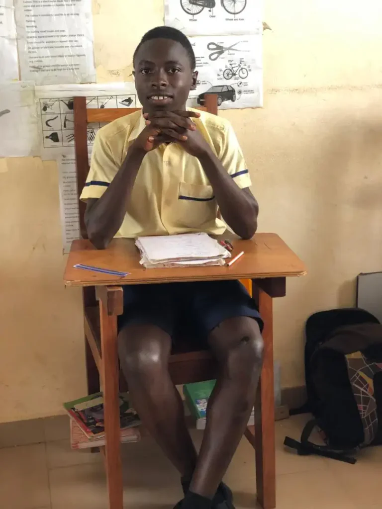 Der 17-jährige David aus Okorase in Ghana hat gerade seinen Grundschulabschluss an der von ORA unterstützten Little Flower Schule gemacht. Drei weitere Jahre dauert es noch, bis er seine weiterführende Schule mit Schwerpunkt auf Bauwesen abschließen wird. Davids Vater bewirtschaftet ein kleines Stück Land und seine Mutter versucht durch den Verkauf von verschiedenen Gütern am Markt etwas Geld für die Familie zu generieren. David ist zwar eher ein durchschnittlicher Schüler, aber sehr motiviert. Er setzt alles daran, eines Tages Bauingenieur zu werden.